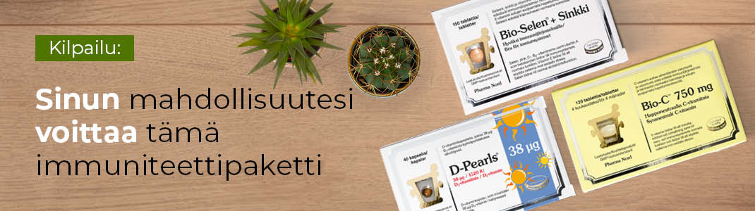 Voita immuniteettipaketti, joka sisältää tuotteet: D-vitamiini, Seleeni+Sinkki ja C-vitamiini!